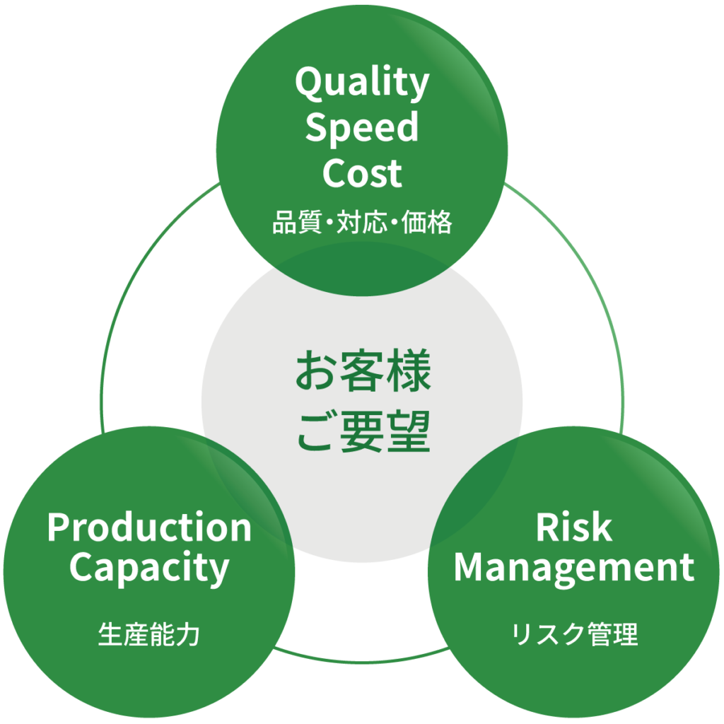 当社の強みとしてそこに必要とされるファインセラミックス材を主とした製品の試作から量産生産に至るまで最新の設備を備え、安定的に生産対応致しております。また生産工場は日本海側に位置し利便性やアクセスの観点よりも事業継続計画(BCP)の面でも、よりお客様の信頼を得ることができております。
