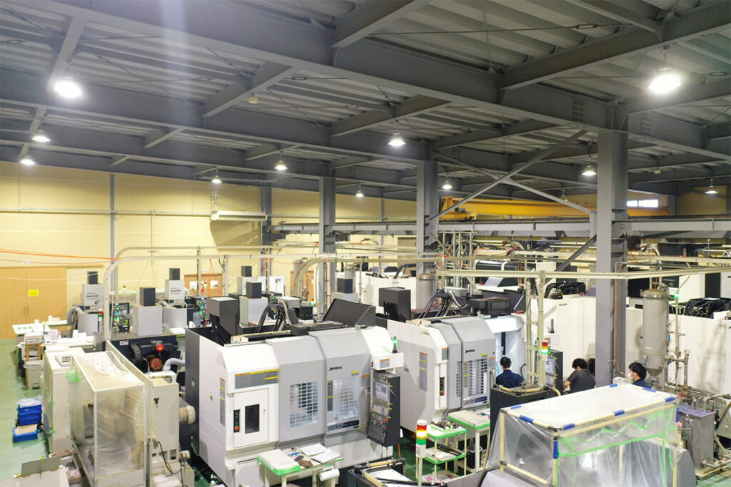 創業時は3台、現在では100台を超す工作機械で高精度加工を実現。機械のみならず人員教育も徹底。
